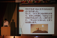 中学部の生徒が、小学生に向けて読み聞かせを行っています。これが相愛(あいあい)リーディングです。中学部の3名が、1・2年生、3・4年生、5・6年生に向けて本を選び、読み聞かせをしました。中学部生徒が丁寧に読み聞かせをすると、小学部児童が集中して聴いていました。温かい交流で、学年を超えてつながったひとときでした。