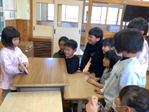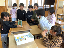 1・2年生は、生活科の時間に作ったおもちゃを持って、近くの宮浦保育園を訪問しました。紙コップや模造紙、段ボールやビニール袋などを用いて動かしたり、ゲームのように遊べたり保育所の1歳児から年長児まで喜ぶようなおもちゃを準備していました。遊び方を説明したり、こつを教えたりしていました。最後の挨拶で、「今日は楽しかったですか?私達も楽しかったです。」と満足そうに話していました。これからも交流を続けるそうです。楽しみです。