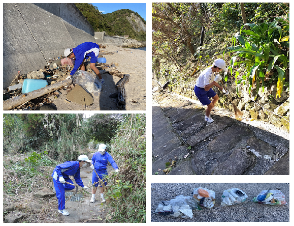中学部生徒がクリーン作戦として、自分達の住む地域の清掃作業に取り組みました。事前に地区ごとに計画を立て、準備を進めてきました。今年は度重なる台風の被害で、どの地区も木々が倒れていたり、漂着物が多かったりして作業は大変でしたが、その分生徒たちの達成感は大きかったようです。