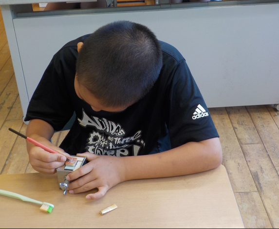 技能士会の方を迎えて、技能体験教室が行われました。最初に印章についてのお話があった後、早速印章(自分だけのはんこづくり)体験をしました。普段の授業以上に集中し、わからないことがあると技能士のみなさんにお聞きし、作り上げていきました。できあがったら皆大変満足そうにしていました。