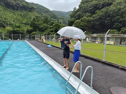 6月6日(木)午後、中学部のプール開きをしました。ボールを使って楽しみました。皆、仲が良い様子が伝わります。その後泳ぎました。後半、雨が降ってきました。見学の生徒も先生のサポートをしたり、落ち葉を掃いたりしました。