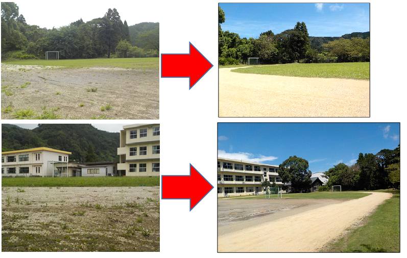 おかげさまで、下のようにきれいに整備することができました。これで、素晴らしい環境の下で運動会に向けた練習等ができます。ご参加いただいた皆様、本当にありがとうございました。