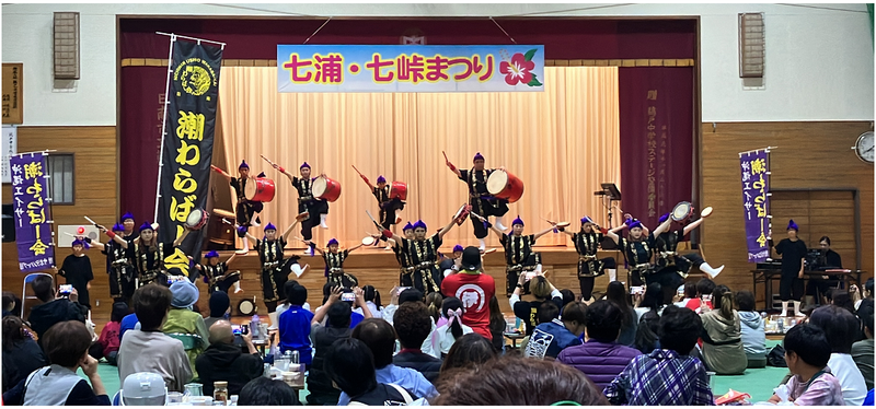 10月28日(土)は4年ぶりに七浦・七峠まつりが開催されました。たくさんの地域方が参加される中で、鵜戸小中学校も小学部が元気太鼓を、中学部がソーラン節を上手に披露することができました。