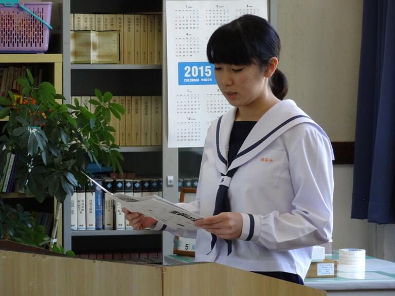 全校学習・文化委員長が27年度活動計画を説明しました。