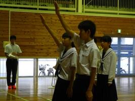 9月25日(金)の朝の時間に、26日に開催される南那珂地区中学校秋季体育大会へ向けての選手推戴式を行いました。選手一人一人が大会に向けての豊富を話した後に、男子キャプテンと女子キャプテンが力強く選手宣誓を行いました。校長からは「記録よりも記憶に残るプレーをしてきてください」との話をしました。明日からの大会、みんなの精一杯の活躍を期待しています。頑張ってきてください。