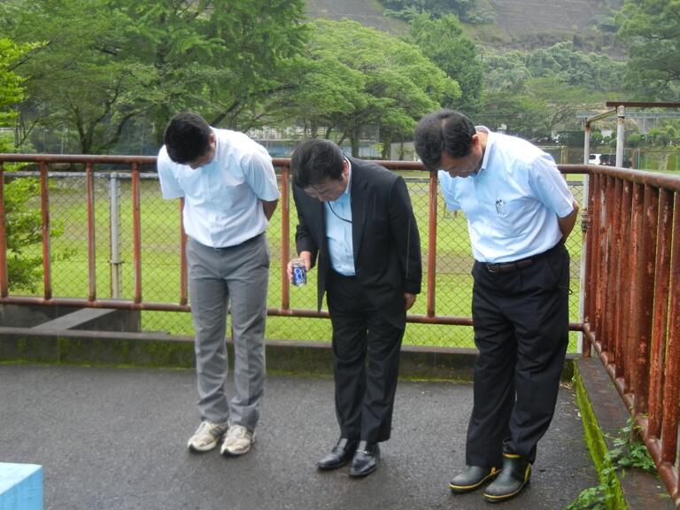 朝一番に、校長、教頭、体育担当者、養護助教諭で、プールの安全を祈願して、お清めの盛塩と御神酒を行いました。事故が無く、楽しくプールの授業が行われることを祈っています。