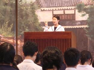 10月1日(木)に小村記念館において【第58回南那珂地区中学校英語暗唱弁論大会】が行われました。本校からは暗唱の部に2年生の美月さん、弁論の部に3年の友香さんが出場しました。