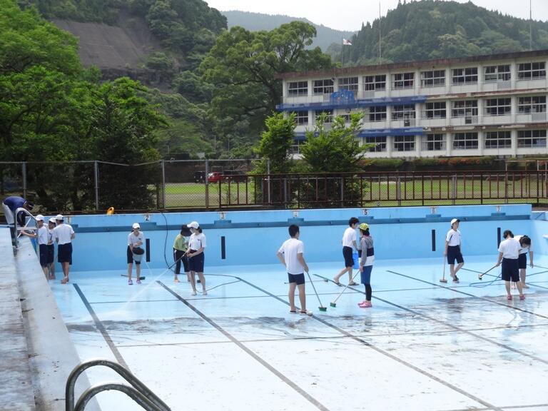 平成27年6月1日(月)5・6校時に、全校生徒でプール清掃を行いました。先生、生徒すべてあわせても18人での作業でしたので、終わるか心配でしたが、一人一人がてきぱきと動き、予定よりも早く清掃を終了しました。いよいよ6月18日(木)が待ちに待ったプール開きになります。