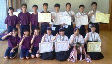 8月に行われた、全九州中学校弓道大会で女子が優勝、男子が準優勝し、個人でも2位と3位に入賞したことが認められての受賞です。