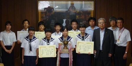 3月に行われる九州大会での健闘を誓い、最後に、市長と一緒に写真を撮りました。