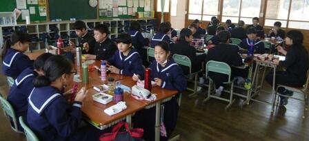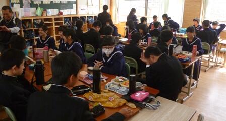 どの教室にも笑顔があふれていましたが、3年生が一番ノリノリでした。高校生になったら、時には自分で弁当をつくって、お母さんに楽させてあげましょうね!