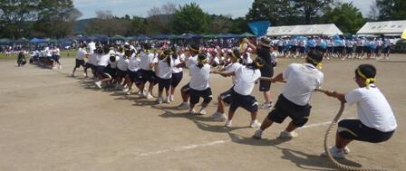 3年団技のつなひき。激戦となり、同点決勝の末、黄団が優勝しました。