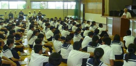 私(校長)からは、①夏休みから新学期に向けて「切り替え」をしっかり行うこと、②それぞれの行事に対し、テーマをもって積極的に関わり、それを通して一人一人の生徒が成長すること、③勉強を頑張って、夢の実現に必要な学力を身に付けること、の3つをお願いしました。