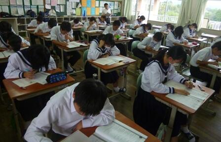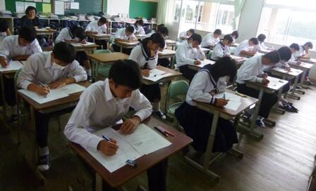 写真は、3年生の英語のテストの様子です。、皆、真剣に取り組んでいます。先日は、質問教室も実施されましたが、質問したところが出てるといいですね!