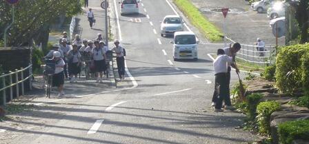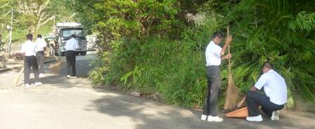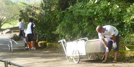 前日に職員で行った台風後の清掃作業で行きとどかなかった部分を、きれいにしてくれました。お疲れ様でした。