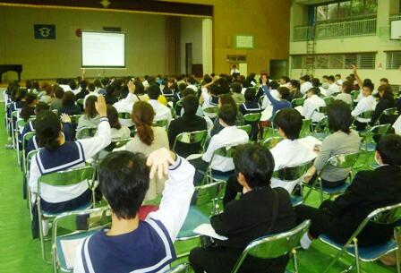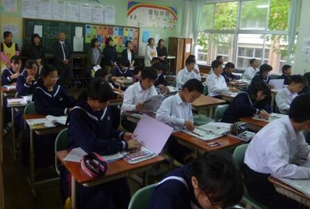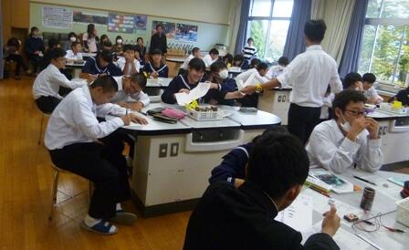 あいにくの雨で、足もとの悪い中おいでいただき、ありがとうございました。写真は上から1年生(社会の授業)、2年生(理科の授業)、3年生(高校入試説明会)の様子です。