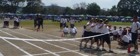 3年団技のつなひき。激戦となり、同点決勝の末、黄団が優勝しました。