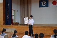 4月25日、大束中学校生徒会は串間市社会福祉協議会へ、熊本地震災害支援金を届けました。