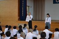 各学年の代表生徒と生徒会役員が2学期の反省と冬休みの過ごし方について発表してくれました。