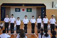 終業式に先立ち、明日23日に新富町文化会館で行われる「宮崎県アンサンブルコンテスト」に出場する音楽部の壮行式を行いました。