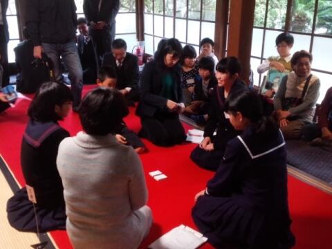 始業式に先立ち、昨日行われた「くしま学カルタ大会」の表彰を行いました。