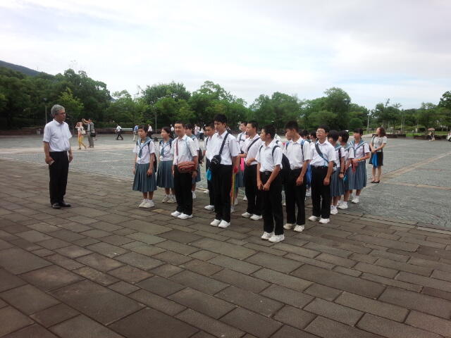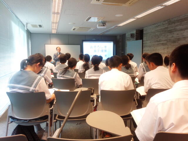 原爆資料館で平和学習を行っています。『峰 徹』先生による被爆体験講演です。