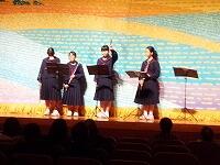 12月19日(土)に新富町文化会館で行われた「第41回宮崎県アンサンブルコンテスト」で、大束中学校音楽部がフルート4重奏で見事「金賞」を受賞しました。保護者の見守る中、普段と変わらない堂々とした演奏をすることができました。ご指導いただいた顧問の小山洋子先生、フルート実技指導の井手純子先生、本当にありがとうございました。