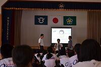 7月22日(金)に、大束小学校、大平小学校、大束中学校の3校で「南極教室」を実施しました。会場の大束中学校体育館は、熱気に包まれ、南極とはほど遠い蒸し暑さでした。