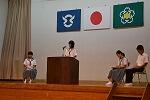 各学年代表の生徒による「2学期の抱負」と生徒会代表による話がありました。