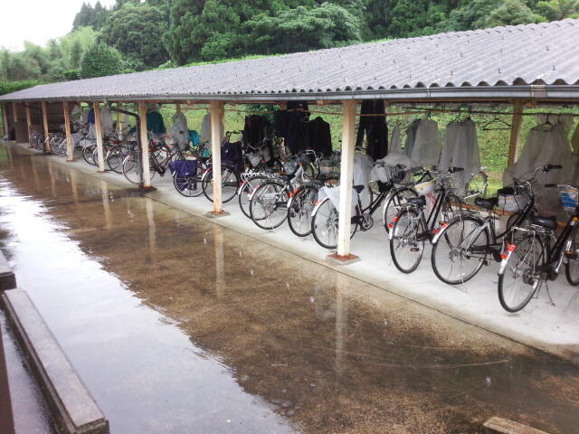 生徒会生活美化委員会の活動目標にも掲げてある『自力登校』を実践しようとたくさんの生徒が雨の中自転車で登校しています。