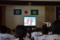 7月22日(金)に、大束小学校、大平小学校、大束中学校の3校で「南極教室」を実施しました。会場の大束中学校体育館は、熱気に包まれ、南極とはほど遠い蒸し暑さでした。