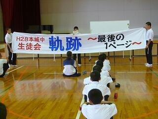 本日、無事に本城中最後の1学期終業式を終えました。4名の生徒が1学期を振り返ってくれました。明日から夏休みです。一人一人が、健康に気をつけて充実した夏休みにしてほしいと思います。また2学期に元気な姿で再会できることを楽しみにしています。