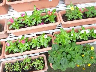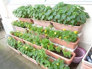種から育てたマリーゴールドやサルビア、日々草等の夏の花々が咲き出しました。春のペチュニアも今なお頑張って咲いています。最近の大雨で、ひまわりが全滅してしまいましたが、ゴーヤとヘチマは、見事にグリーンカーテンとなりました。