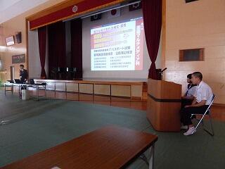5,6時間目に生徒総会が行われました。出席した生徒全員が発言をし、活発な意見交換が行われました。決定した生徒会スローガンが「軌跡~最後の1ページ~」です。生徒会執行部が中心となって学校を盛り上げてくれるでしょう。