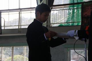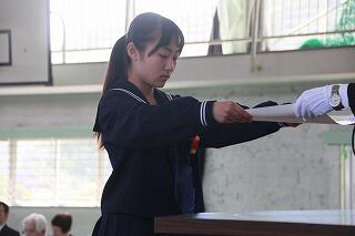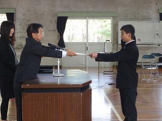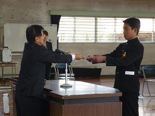 証を授与しました。式では、3名全員が、市木中での思い出と4月から