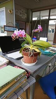 ピンク色の胡蝶蘭は、4月から新しい串間中の保健室に置か