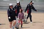 毎年行っている小中合同ボランティアを今年度も実施しました。渚百選にも選ばれている石波海岸の清掃を小学校と協力して行いました。3つのグループに分かれて砂浜に落ちているゴミを拾いましたが、拾っても拾っても終わりのないゴミに生徒も小学生もびっくりしていました。わずか1時間あまりでしたが、軽トラックの荷台いっぱいのゴミが集まりました。ゴミの中には、外国語表記のペットボトルや調味料などもあり、「自分たちが捨てたゴミも他の国の海岸に流れていているのだろうか。絶対にゴミをポイ捨てしないようにしよう」と考えていました。生徒にとって、自分たちのふるさとの自然を守ることの大切さについて考えるよい取組になりましあ。