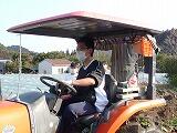トラクターで畝を起こし、掘ったゴボウを作業所に運びます。