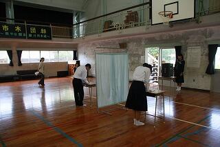 立会い演説会では、3名の立候補者が閉校までの市木中学校での