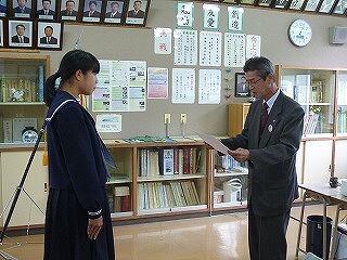 教育長の土肥昭彦様が学校まで来られて、表彰してくださいました。