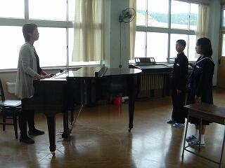 一年生は初めての音楽の授業で、「息づかいの学習」でした。中学校での生活にだいぶ慣れてきたようです。