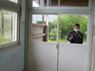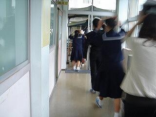 校内巡回をして、職員室入室の練習です。