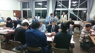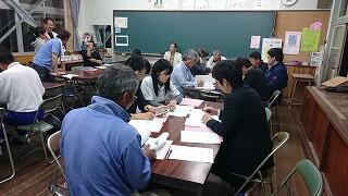 全体会では、はじめに実行委員長の阿萬光弘さんのあいさつがあり、副実行委員長の宮内浩さんの進行で、事業計画や予算等について協議がなされました。その後、広報部、記念式典部、記念誌部、記念碑部の各部に別れて今後の計画についての話合いが行われました。