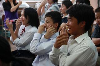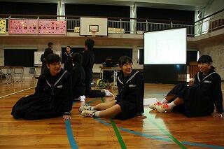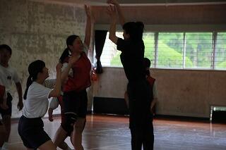 また、講演終了後は体育のバスケットボールの授業を本校の佐藤先生と一緒にしていただき、給食も生徒達と一緒に食べていただいて、子どもたちにとってとても楽しい一日になりました。