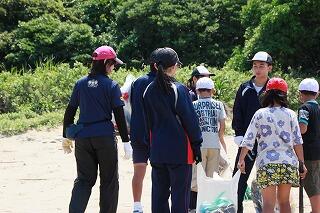 今日は、午後の時間に、市木小・中合同で石波海岸のゴミ拾いのボランティア活動を行いました。昨年は雨ため実施できませんでしたが、今日は暑いぐらいの晴天に恵まれ、清掃活動を行うことができました。