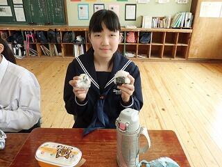 今日は今年度最初の弁当の日でした。テーマは「おにぎりを作ろう」でした。それぞれ思い思いのおいしそうな“おにぎり”ができあがっていました。