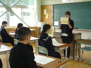 2年生は英語で、秋に行われる地区英語暗唱・弁論大会に出場するための原稿づくりに、ALTの先生と三人で取り組んでいました。英語ばかりの会話で、私には内容はよく分かりませんでした。