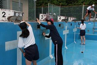 今日の午後はプール清掃でした。今日は暑い一日でしたが、午後になって雲が出てきて、思ったよりも暑さを感じずに活動ができました。生徒と先生方の協力でプールがとてもきれいになりました。生徒達は、6月9日(木)のプール開きから始まる水泳の授業を楽しみにしています。