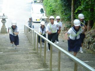 訓練です。津波に備えた二次避難所は下校途中にある市