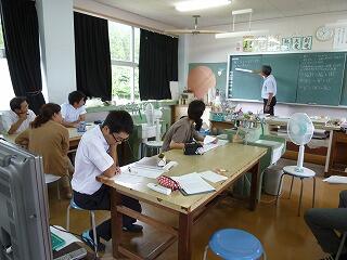 先生方は、昔習った記憶をたどりながら授業を受け、その後授業改善のための質問や意見交換を行いました。